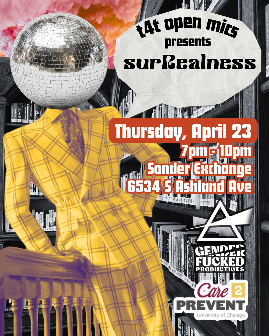 My reality — SurRealness🎤 T4T Open Mic is on April 23rd at Sonder Exchange, and we’re looking for performers! All types of performers are welcome, and we prioritize artists of color. Sign-up here. Deadline: April 16th. 🪩