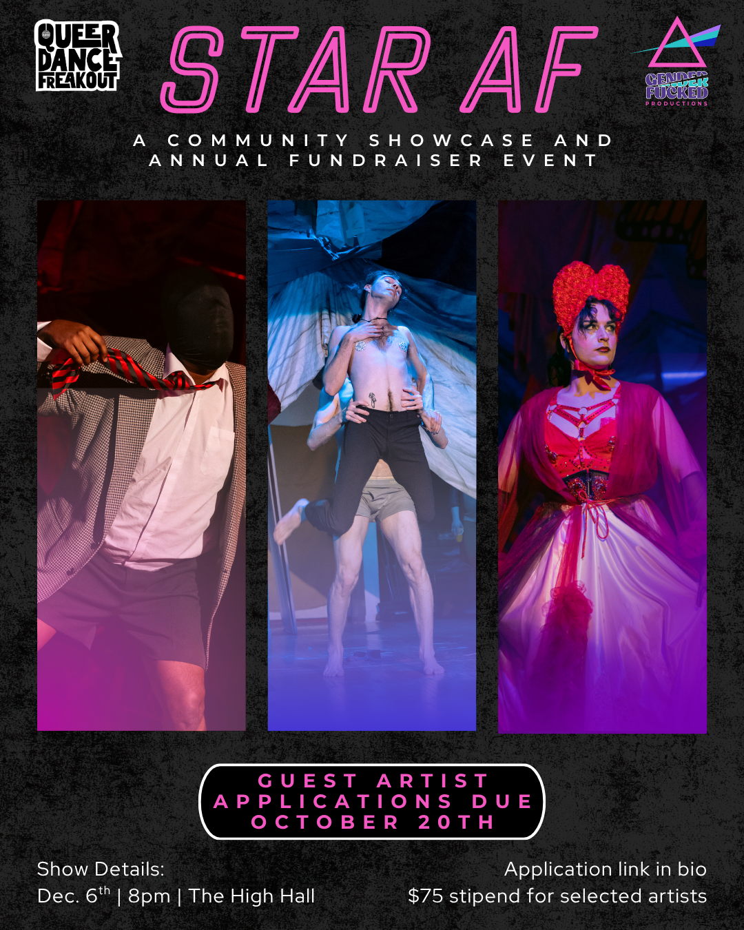 STAR AF IS BACK!!! This time with a theme…. Perform with us this December at: Krampus Christmas, a twist on the holiday from the perspective of queer monsters. Come freak out with us as a guest artist. On-theme submissions are highly encouraged. Apply using the link in our bio by October 20th. $75 pay for performers 👹